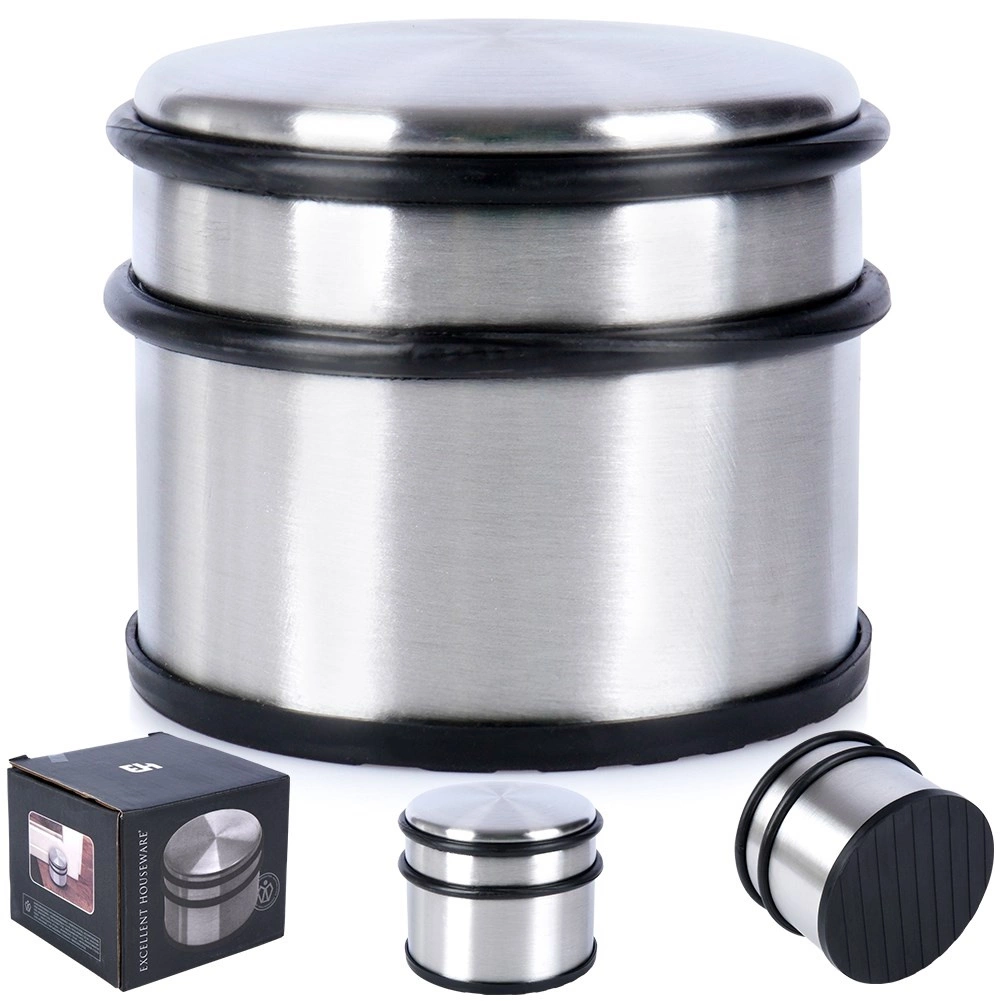 Opritor robust pentru uși, cu aspect modern din oțel inoxidabil, asigură că ușile nu se vor închide singure și nu vor lovi pereții sau mobilierul. Construcția masivă și baza din cauciuc antiderapant garantează stabilitate pe majoritatea tipurilor de pardoseli.