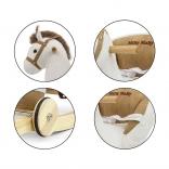 Căluțul balansoar Polly a fost proiectat special pentru copiii mici, pentru care jucăriile balansoar clasice pot fi prea mari. Șaua confortabilă, tip fotoliu, cu laterale înălțate și centuri ajustabile menține copilul în siguranță și confort, în timp ce șinele din lemn cu reazeme pentru picioare și mânerele laterale ajută la menținerea echilibrului.
