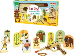 Așezați țintele, întindeți elasticul și provocați familia sau prietenii la un duel în sufragerie. Construcția de calitate din lemn asigură durabilitate și o viață lungă a jucăriei, iar designul western atrăgător îi va încânta pe micii pistolari.