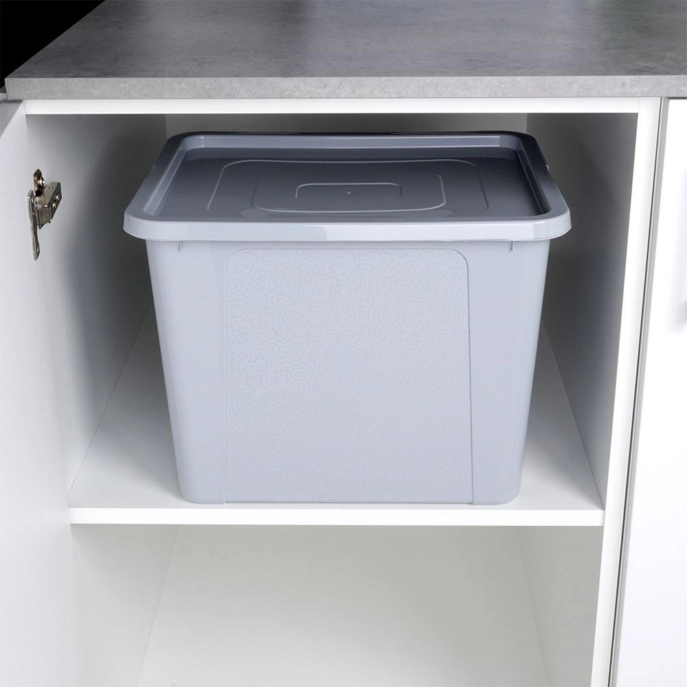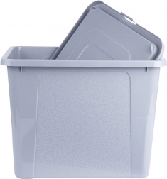 Cutia practică de depozitare cu capac, cu un volum de 30 l, ajută la menținerea ordinii în gospodărie, birou și atelier. Este ușoară, dar rezistentă, are colțuri rotunjite pentru utilizare în siguranță și un capac cu clips care protejează conținutul de praf și umiditate. Datorită designului universal în gri deschis, se potrivește în dulapuri, rafturi și etajere.