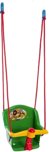 Leagănul verde pentru copii, din plastic rezistent, îi va încânta pe toți micuții năzdrăvani. Oferă structură solidă, funcție sonoră pentru și mai multă distracție și bară de siguranță pentru legănat liniștit. Datorită frânghiilor rezistente și dimensiunilor compacte, este ideal pentru grădină și terasă.