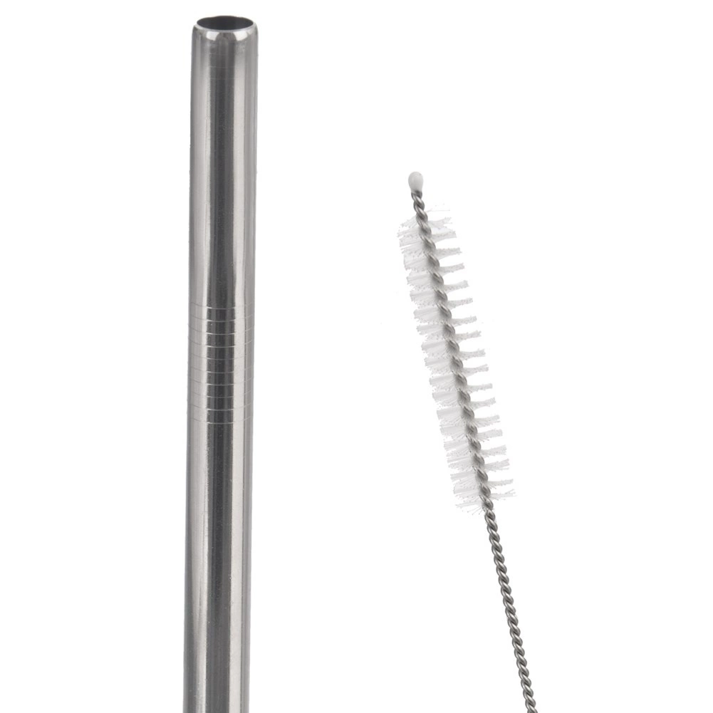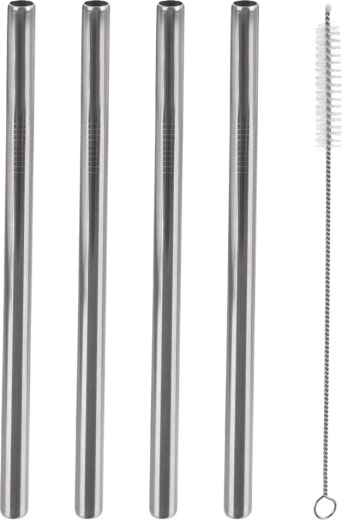 Bucurați-vă de băuturile preferate în mod sustenabil. Paiele din inox, în elegantul argintiu, nu modifică gustul băuturilor, arată minunat în pahar și sunt potrivite pentru apă, smoothie-uri, cocktailuri, limonadă, cafea și ceai cu gheață. Setul include o perie îngustă de curățare pentru o igienă perfectă.