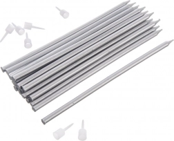Creați un moment de neuitat la suflatul lumânărilor cu setul de lumânări argintii lungi. Datorită înălțimii de 14,5 cm, se evidențiază frumos chiar și pe torturile mai mari, fără a acoperi decorurile. Suporturile albe practice asigură plasarea sigură și fermă a lumânărilor în blat.
