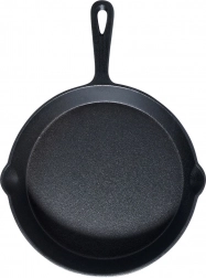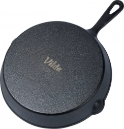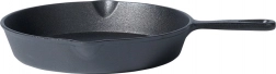 Această tigaie integral din fontă, în culoare neagră, este extrem de rezistentă și durabilă. Fonta distribuie și menține excelent căldura, astfel încât obții o gătire perfectă a cărnii, legumelor și cartofilor, iar mâncarea rămâne caldă mai mult timp. Două ciocuri laterale de turnare facilitează scurgerea sucurilor și sosurilor fără murdărie.
