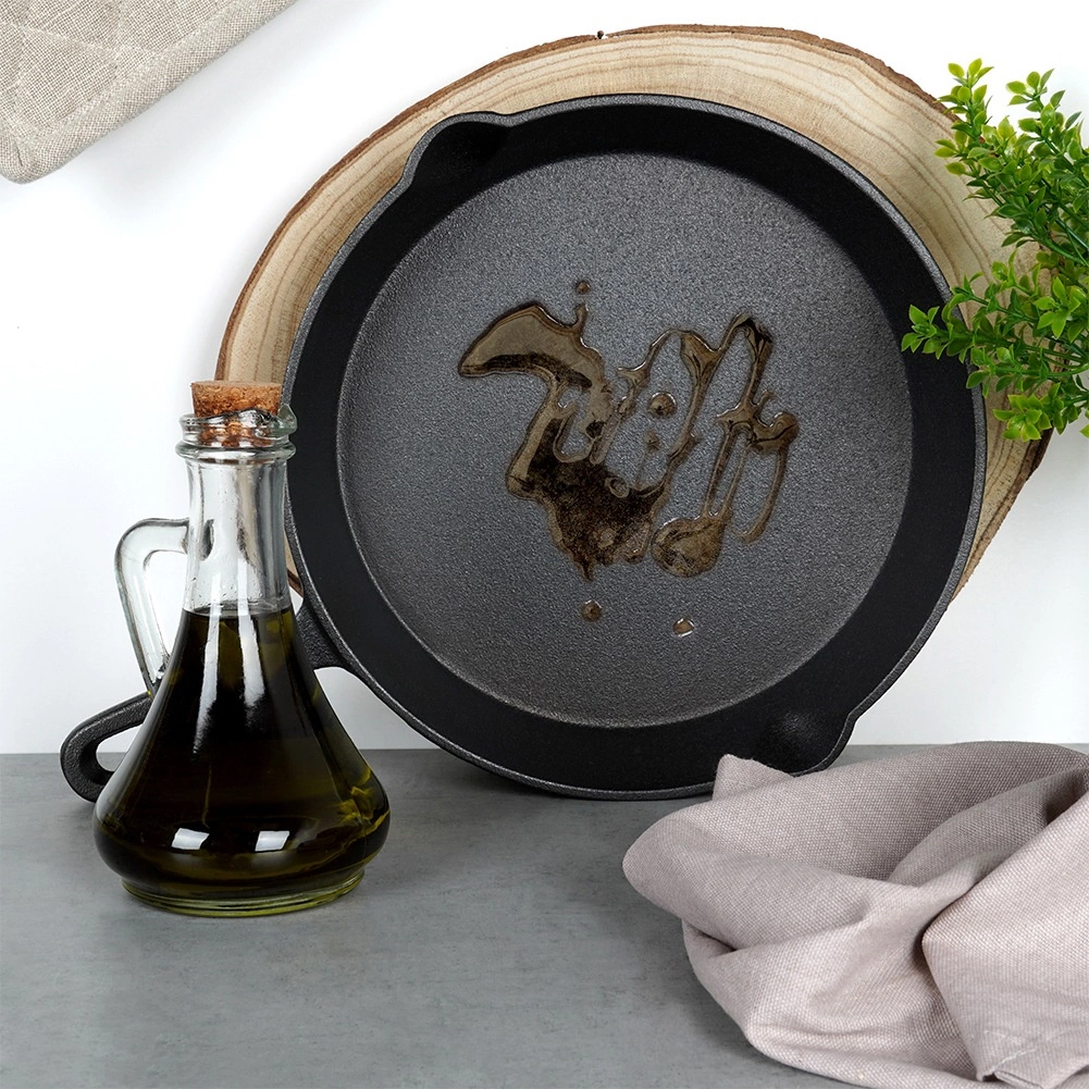 Sfat de întreținere: După fiecare utilizare, spală, usucă bine și unge ușor cu ulei. Uleiul aplicat regulat protejează fonta împotriva coroziunii și îi prelungește durata de viață. Tigaia nu are niciun înveliș antiaderent.