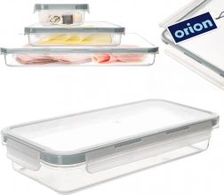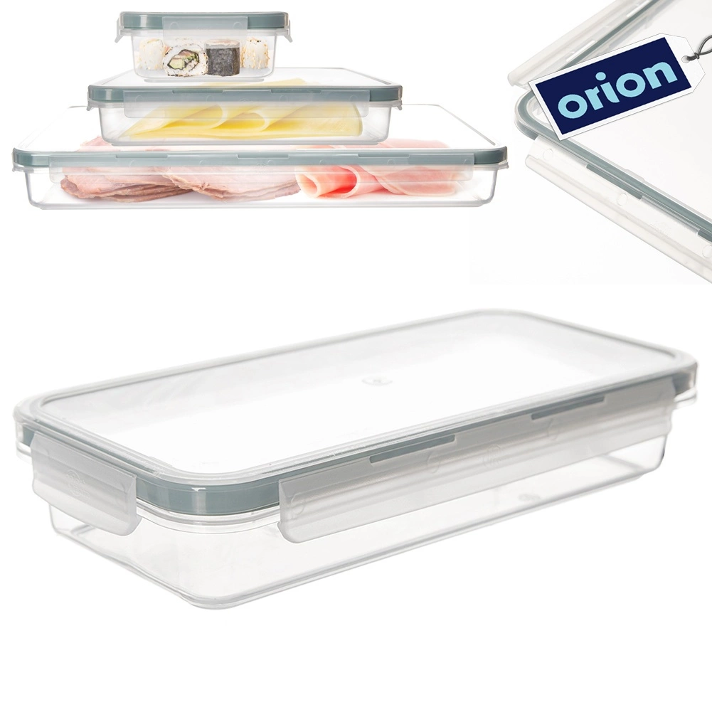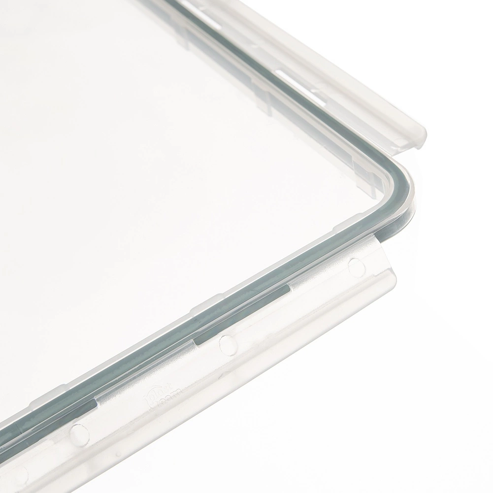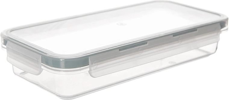 Cutia universală joasă pentru alimente, din plastic rezistent și transparent, este excelentă pentru depozitare, transport și organizarea meselor. Datorită capacului solid cu 4 cleme și garniturii din silicon de calitate, conținutul este protejat de aer și umiditate, astfel încât alimentele rămân proaspete mai mult timp.
