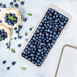 Profilul jos și capacul plat economisesc spațiu în frigider și permit stivuirea sigură a mai multor cutii.