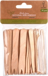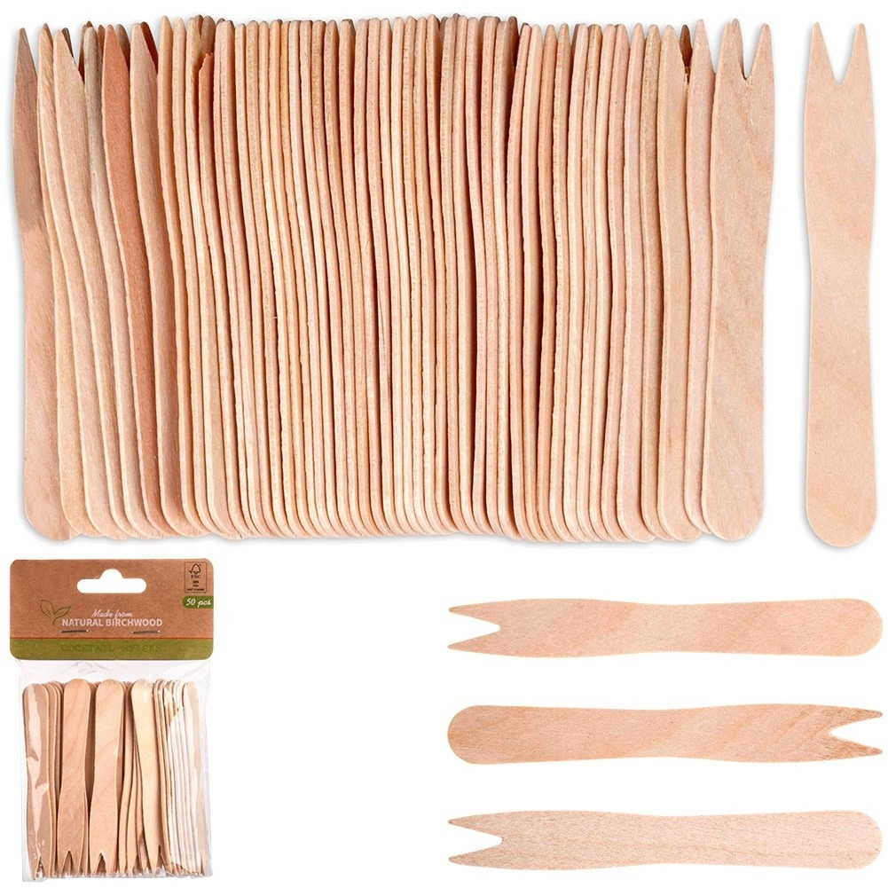 Furculițe practice de unică folosință din lemn, cu lungimea de 8,5 cm, în pachet de 50 bucăți, pentru servirea și consumul ușor al gustărilor. Fabricate din lemn natural de mesteacăn, sunt rezistente, ușoare și rezistente la rupere. Ideale pentru cartofi prăjiți, fructe, brânzeturi, legume sau mini sandvișuri. Ecologice și biodegradabile, o alternativă excelentă la plastic.