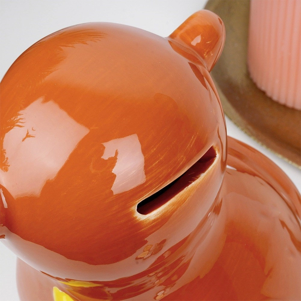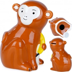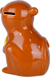 Această pușculiță decorativă în formă de maimuțică încântă prin aspectul vesel și funcționalitate. Datorită orificiului cu dop pe partea inferioară, poți scoate banii economisiți oricând, fără a fi nevoie să spargi pușculița. Suprafața ceramică lucioasă se întreține ușor, iar culorile vii atrag atenția în camera copiilor, living sau birou.