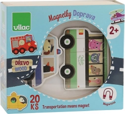 Set de magneti de lemn cu motive de mijloace de transport, ideal pentru decorarea camerei copilului sau a frigiderului. Fabricat ecologic și prietenos cu mediul înconjurător.