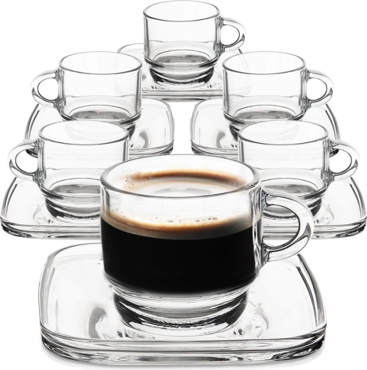 Cu acest set de 6 cești din sticlă pentru espresso te vei bucura de cafea ca la cafenea. Sticla transparentă pune în valoare culoarea și crema, în timp ce farfurioara pătrată oferă un aspect elegant servirii și reține eventualele picături. Datorită dimensiunilor compacte, setul este perfect pentru ritualurile zilnice ale cafelei.