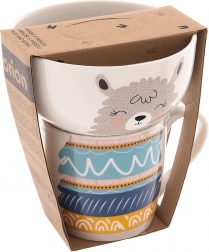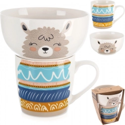 Set stilat și funcțional pentru micii pofticioși și iubitorii motivelor drăgălașe. Glazura albă din porțelan de calitate cu imprimeu delicat cu lamă creează o atmosferă primitoare la masă și încurajează bucuria de a mânca. Cana și bolul au forme plăcute pentru o prindere comodă și utilizare zilnică.