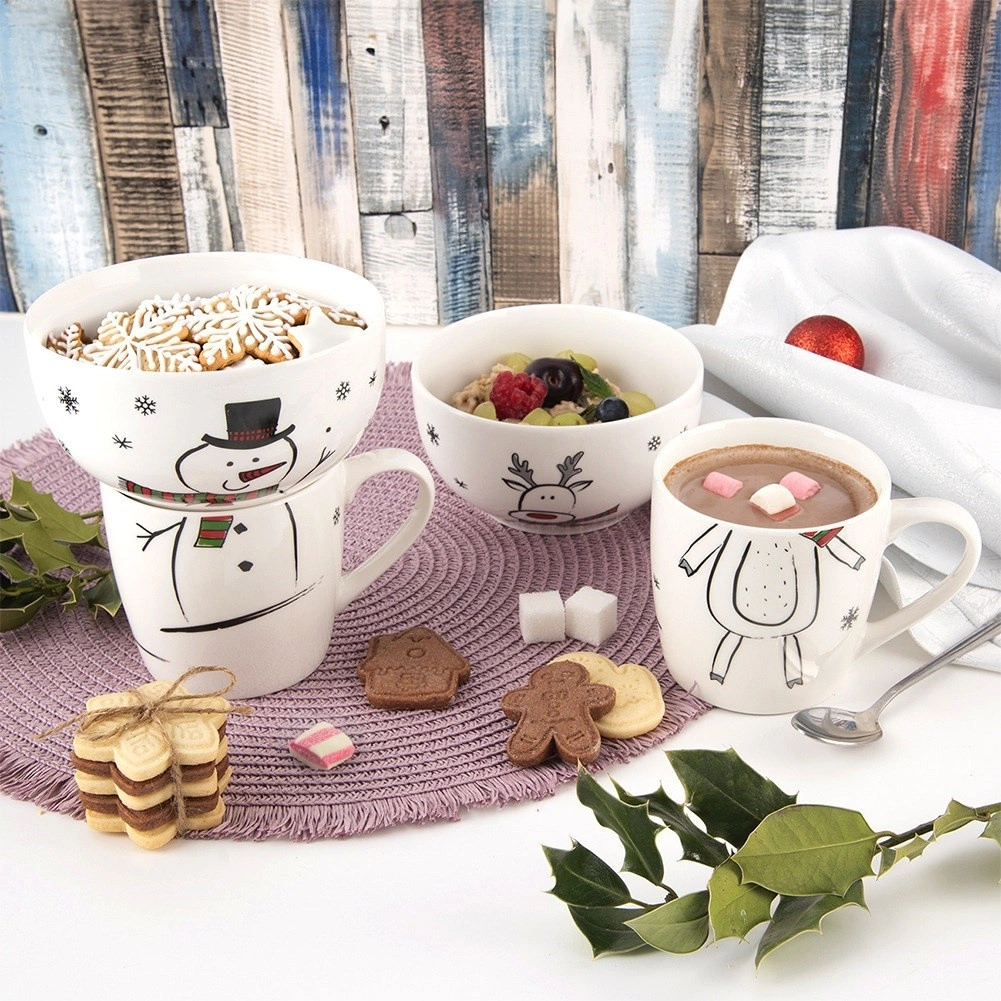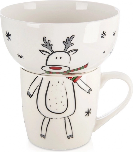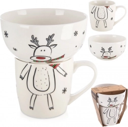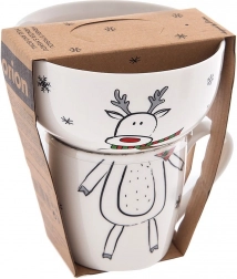 Descoperiți un set practic și stilat pentru micii pofticioși: cană din porțelan (350 ml) și bol (530 ml) cu un motiv vesel de ren, care îi va încânta pe copii și va înveseli fiecare masă. Setul este perfect pentru mic dejun, supe, gustări și deserturi și este potrivit pentru copii de la 3 ani.