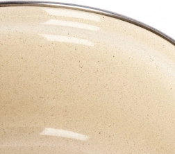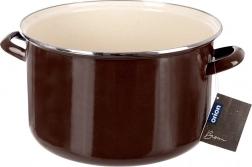 Oala emailată în stil retro impresionează prin construcția durabilă, volumul generos și utilizarea universală în bucătărie. Exteriorul maro, interiorul crem și marginea din inox oferă vasului un aspect elegant. Emailul este sigur pentru sănătate și potrivit și pentru alergici.