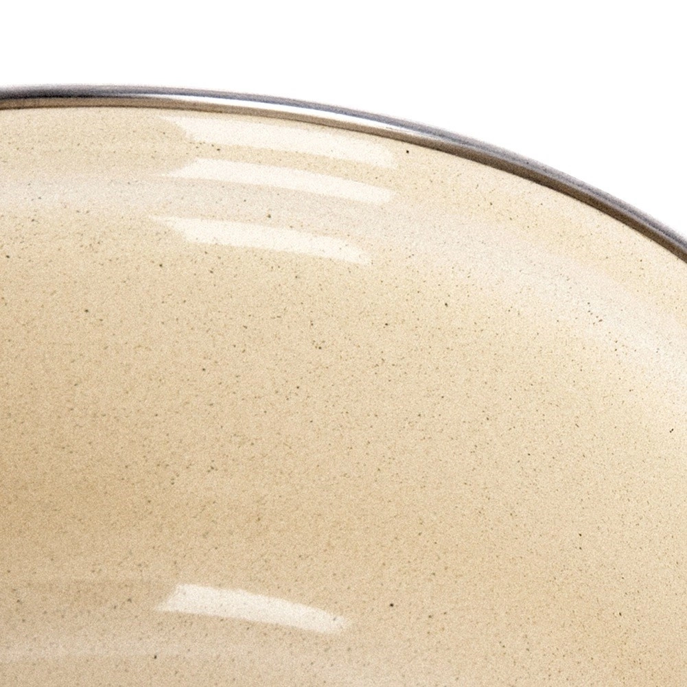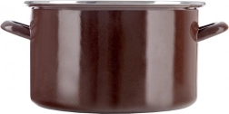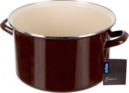 Oală emailată practică și stilată, cu design retro, oferă un volum generos de 11,5 l, diametru 32 cm și înălțime 17 cm – perfectă pentru supe, sosuri și feluri înăbușite. Emailul exterior maro cu interior bej și margine din inox asigură durabilitate și curățare ușoară, iar cele două mânere solide oferă prindere sigură la manevrare.