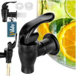Robinetul de rezervă pentru dozatoarele de băuturi este fabricat din plastic rezistent și se potrivește majorității recipientelor comune cu robinet. Datorită mânerului tip pârghie, asigură turnare lină a apei, limonadelor și băuturilor de casă, fără picurare. Finisajul elegant negru se potrivește perfect în bucătărie, la petreceri în grădină și la nunți.