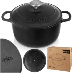Descoperiți oala din fontă emailată de 26 cm din colecția LITINA de la ORION. Fonta masivă conduce și reține excelent căldura, astfel încât preparatele se gătesc uniform, rămân suculente și mai mult timp calde chiar la servire. Interiorul emailat minimizează lipirea și ușurează întreținerea.