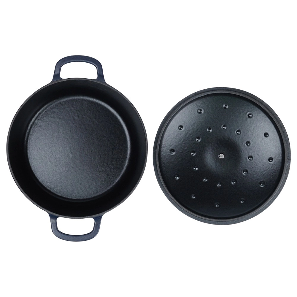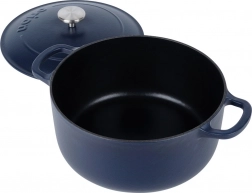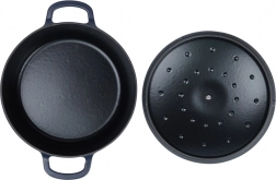 Oală universală din fontă cu capac, volum 5,2 l, pentru gătit zilnic: fierbere, înăbușire și coacere. Datorită distribuției uniforme a căldurii, acumulării îndelungate a căldurii și rezistenței până la 250 °C, face față supelor, gulașurilor și fripturilor pe aragaz, în cuptor și pe grătar. Suprafața emailată din interior ușurează gătitul și curățarea facilă, iar mânerul robust din inox al capacului și mânerele laterale late asigură o manipulare sigură.