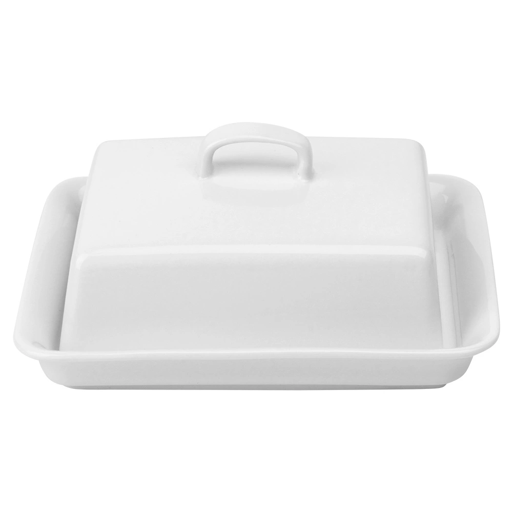 Descoperiți untiera albă atemporală din ceramică de calitate, care păstrează untul mai proaspăt și protejat. Forma clasică se potrivește cu orice set de masă, iar datorită capacului cu mâner practic, untul se manevrează comod acasă sau la servirea pentru oaspeți.