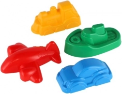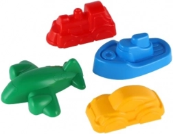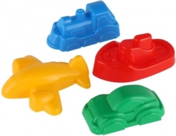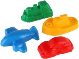 - 4 buc. forme din plastic (tren, barcă, avion, mașină)