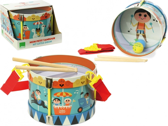 Acest instrument frumos este o alegere excelentă pentru orice mic muzician. Toba metalică este livrată cu o baghetă și o curea reglabilă pentru purtare confortabilă în jurul gâtului. Stimulează creativitatea, imaginația și dezvoltă coordonarea mână-ochi, motricitatea fină și îndemânarea.
