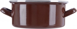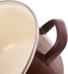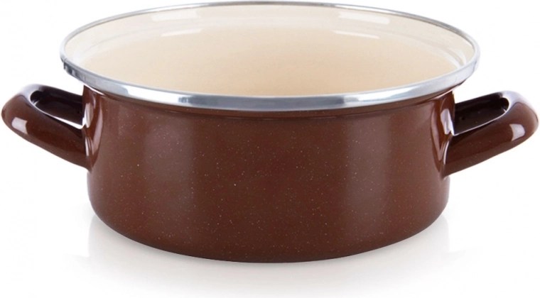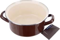 Oală elegantă în stil retro din colecția Brown, care combină rezistența emailului cu un design atemporal. Exteriorul și mânerele sunt maro, interiorul are email crem, iar marginea superioară este din oțel inoxidabil pentru durabilitate sporită. Datorită distribuirii uniforme a căldurii, este excelentă pentru supe, sosuri și preparate înăbușite.