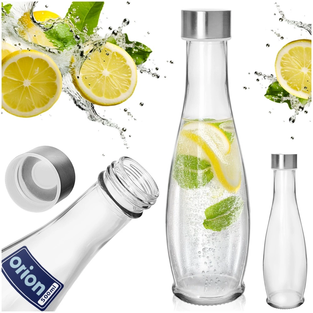Sticla elegantă de 480 ml este excelentă pentru hidratarea zilnică și pentru servirea rafinată a băuturilor la mesele în familie. Sticla transparentă permite controlul nivelului și o prezentare atractivă a băuturilor cu fructe și ierburi. Capacul metalic cu garnitură din silicon asigură o închidere fiabilă, fără scurgeri, și menține băutura proaspătă mai mult timp.