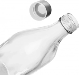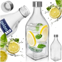 Sticla transparentă, stilată, din sticlă de calitate este perfectă pentru servirea și depozitarea băuturilor. Capacului metalic cu filet și garnitura din silicon asigură închiderea sigură fără scurgeri și păstrează prospețimea băuturii mai mult timp. Liniile curate și baza pătrată garantează stabilitate și turnare confortabilă.