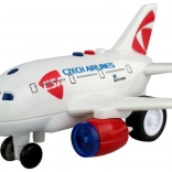 Avion realist pentru copii, licențiat ČSA, care îi va încânta pe micii piloți cu anunțuri autentice ale căpitanului și însoțitoarei de bord, efecte luminoase și un mecanism simplu cu inerție. Jucăria ideală pentru copiii care iubesc avioanele și vor să trăiască decolarea, zborul și aterizarea ca într-un avion adevărat.