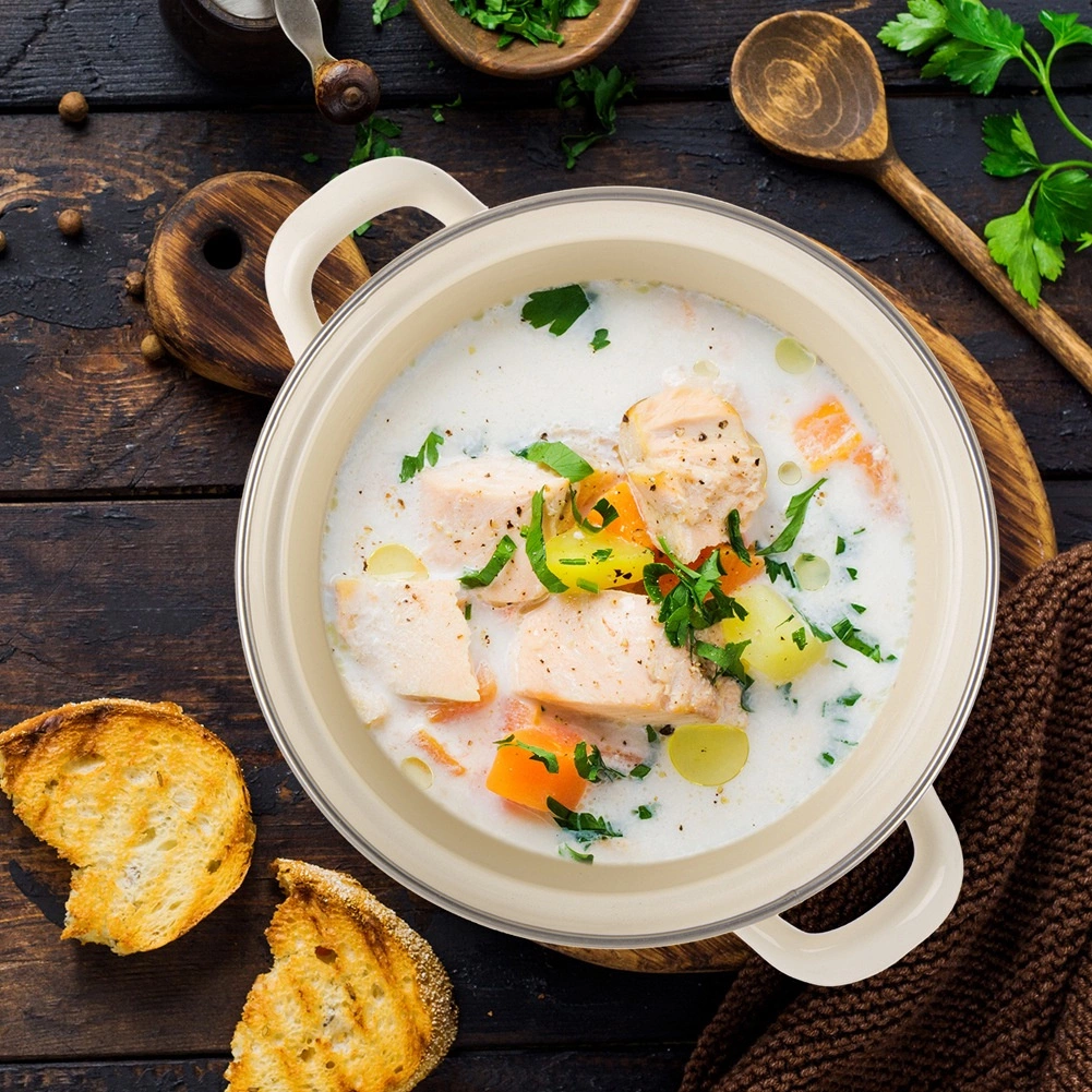 - Utilizare universală: gătit, înăbușit, servire direct pe masă.
