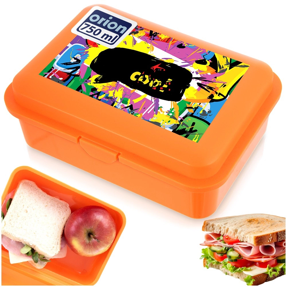 Păstrați gustarea proaspătă și la îndemână. Cutia de gustare portocalie cu imprimeul vesel Cool este perfectă pentru copii la școală și pentru adulți în călătorii. Datorită clipsului solid, conținutul rămâne bine închis, iar dimensiunile compacte încap în rucsac sau geantă.