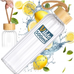 Bucură-te de hidratare pe tot parcursul zilei cu eleganta sticlă Vilde de 500 ml. Sticla borosilicată rezistă schimbărilor bruște de temperatură, astfel că poți pune în ea apă, limonadă, smoothie sau ceai fierbinte. Capacul din bambus cu garnitură din silicon previne scurgerile, iar cureaua textilă facilitează transportul în călătorii.