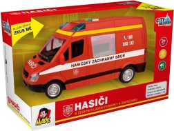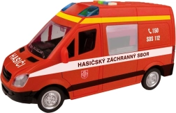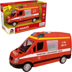 Această dubă de pompieri îi va încânta pe micii salvatori prin aspectul realist și funcțiile sale. La apăsarea butoanelor vei auzi vocea în limba cehă a dispeceratului și a echipajului și vei vedea girofarul intermitent. Datorită mecanismului inerțial, este suficient să împingi ușor mașina și pornește înainte.