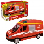 Devino un mic erou cu această jucărie realizată în detaliu – dubă de pompieri cu mecanism inerțial, cu efecte luminoase și replici realiste în limba cehă ale echipajului și dispeceratului. Modelul la scara 1:16 oferă distracție datorită mecanismului de inerție și sunetului de girofar. Bateriile sunt incluse în pachet.