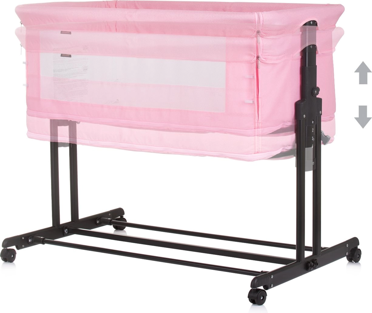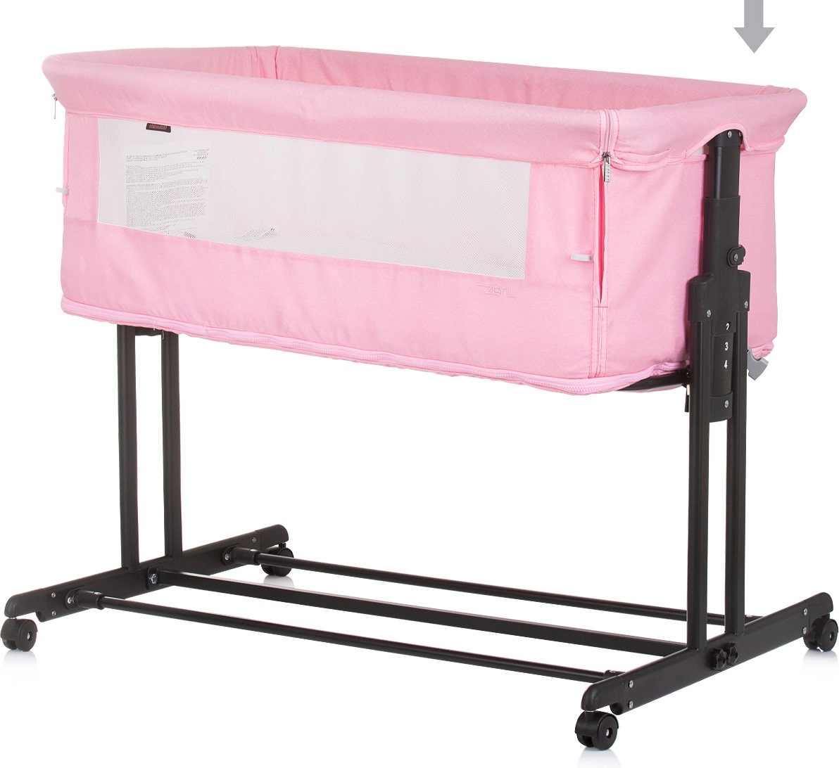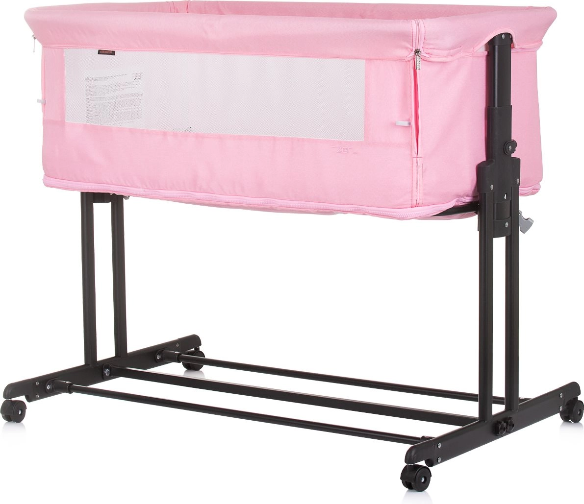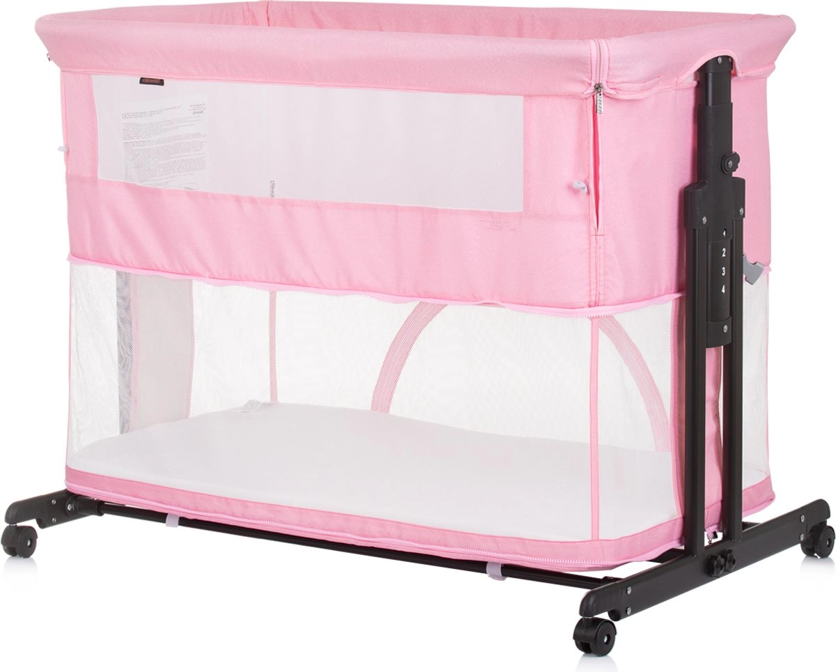 CHIPOLINO Zen Flamingo este o soluție bine gândită pentru somnul liniștit și joaca în siguranță a bebelușului. Datorită modulului co-sleeper, îl fixezi ușor de patul părinților, astfel încât copilul este mereu la îndemână. Panourile din plasă respirabilă asigură circulația aerului și contactul vizual, iar cadrul stabil cu roți și frâne facilitează mutarea prin casă.