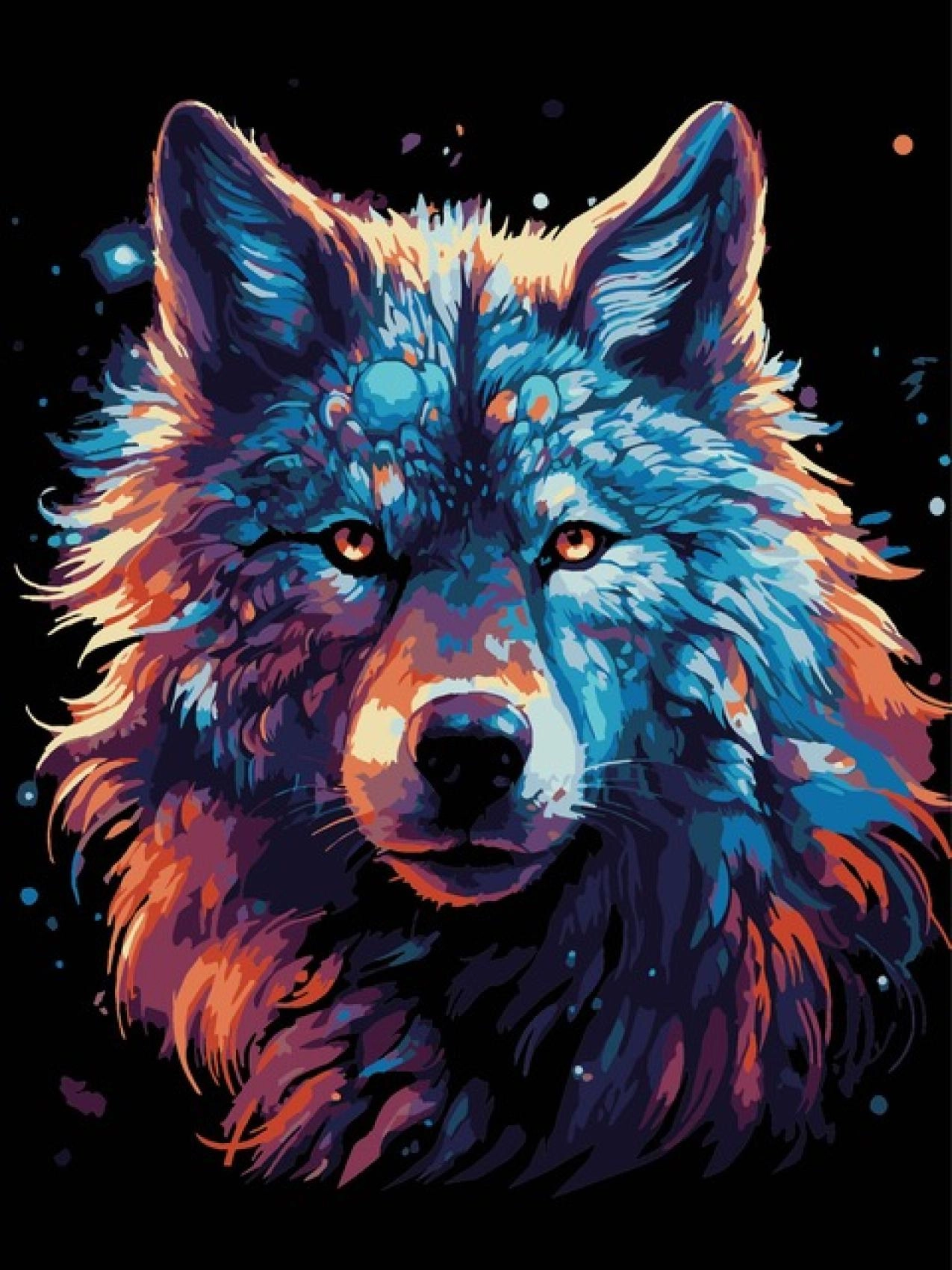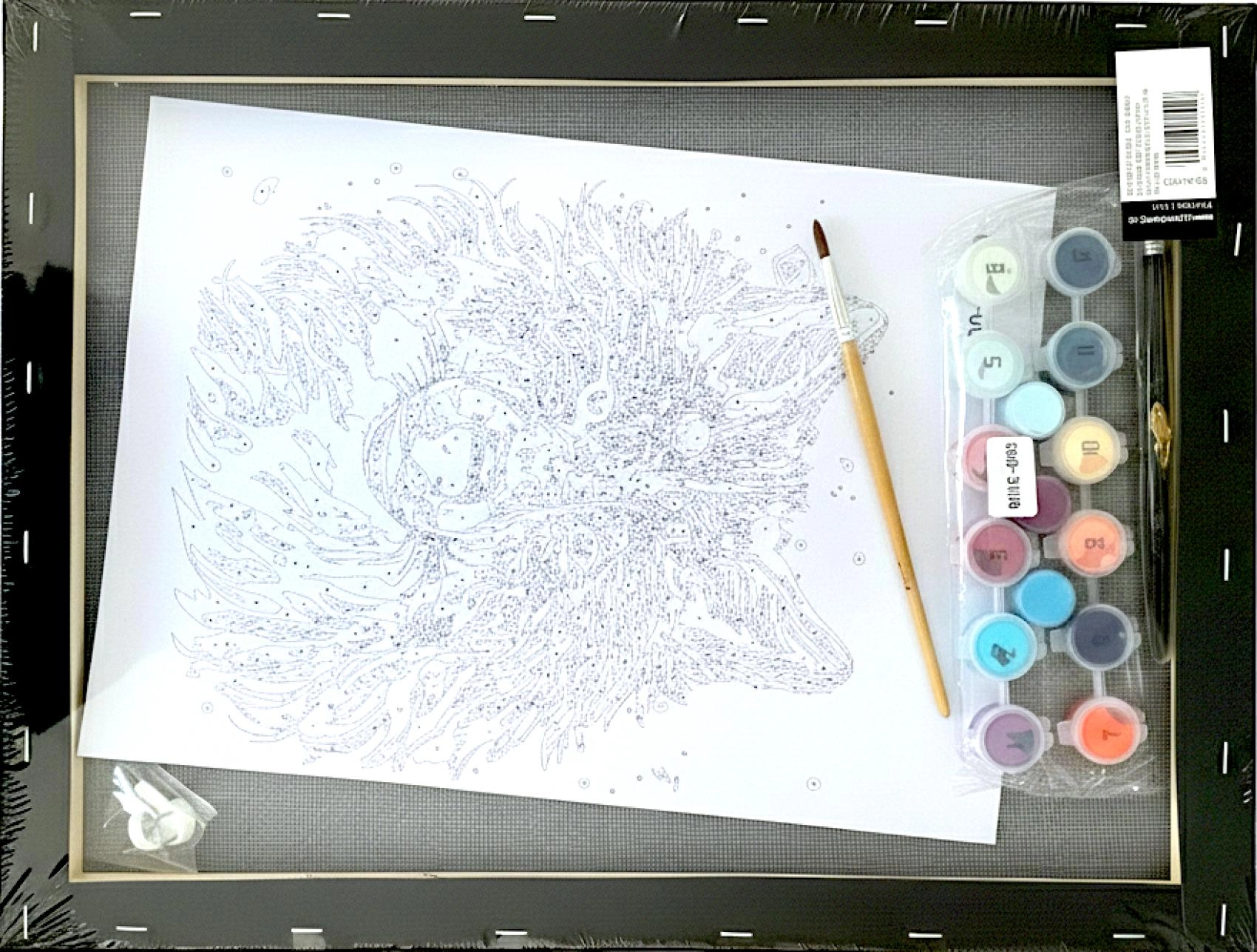 Acest set de pictură după numere vă ghidează pe tot parcursul procesului – trebuie doar să colorați căsuțele numerotate cu culorile corespunzătoare și în fața dvs. va prinde contur un motiv detaliat al lupului. Datorită pânzei întinse, rezultatul este gata de expus imediat.