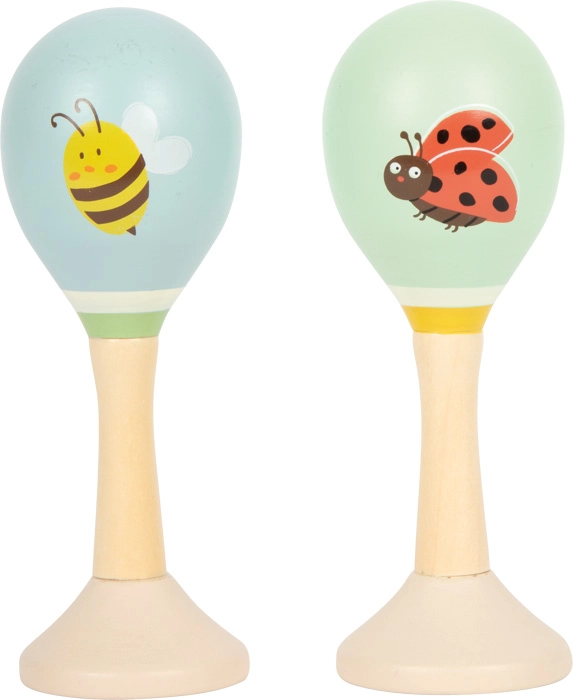 Oferiți-le copiilor bucuria primelor momente de muzică. Maracasurile din lemn Small Foot cu motive de albinuță și buburuză se țin confortabil, zornăie plăcut și, datorită suprafeței netede, sunt sigure chiar și pentru cei mai mici. Culorile pastelate și designul prietenos invită în mod natural la joacă și descoperirea ritmului.