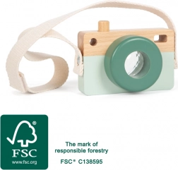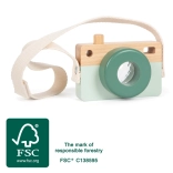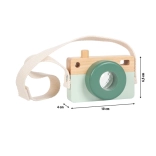 Fabricată din 100% lemn certificat FSC, cu finisare netedă pentru joacă în siguranță. Pe partea din față se află un ceas imprimat cu ace mobile pentru învățarea jucăușă a timpului. Jucăria susține în mod natural motricitatea fină, coordonarea mișcărilor, percepția vizuală și auditivă și dezvoltă imaginația.
