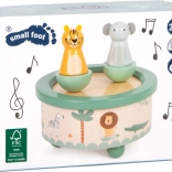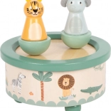 Cutia muzicală fermecătoare din lemn, cu motiv safari de la small foot, îi va încânta atât pe copii, cât și pe părinți. Pe suporturile magnetice, două figurine adorabile – un tigru și un elefant – se rotesc pe ritmul melodiei „Twinkle, Twinkle, Little Star”. Fabricată din lemn 100% FSC, cu culori delicate și design modern, devine o decorațiune grațioasă pentru camera copilului și, în același timp, susține dezvoltarea motricității, imaginației și dragostei pentru muzică.