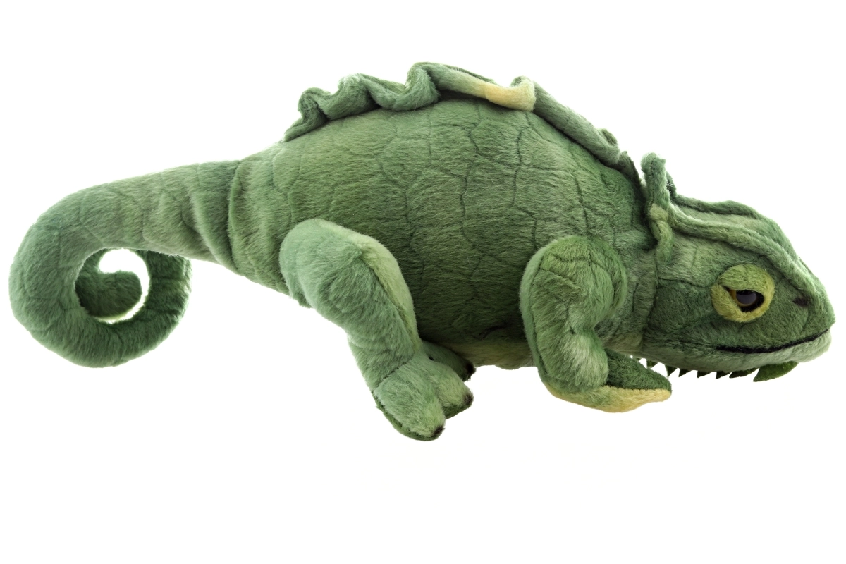 Acest cameleon de pluș eco-friendly încântă prin aspectul realist, cu corp modelat specific, detalii dorsale fine și coadă răsucită. Umplutura foarte moale și suprafața catifelată asigură îmbrățișări confortabile, iar ochii brodați și cusăturile îngrijite oferă siguranță chiar și pentru cei mai mici.