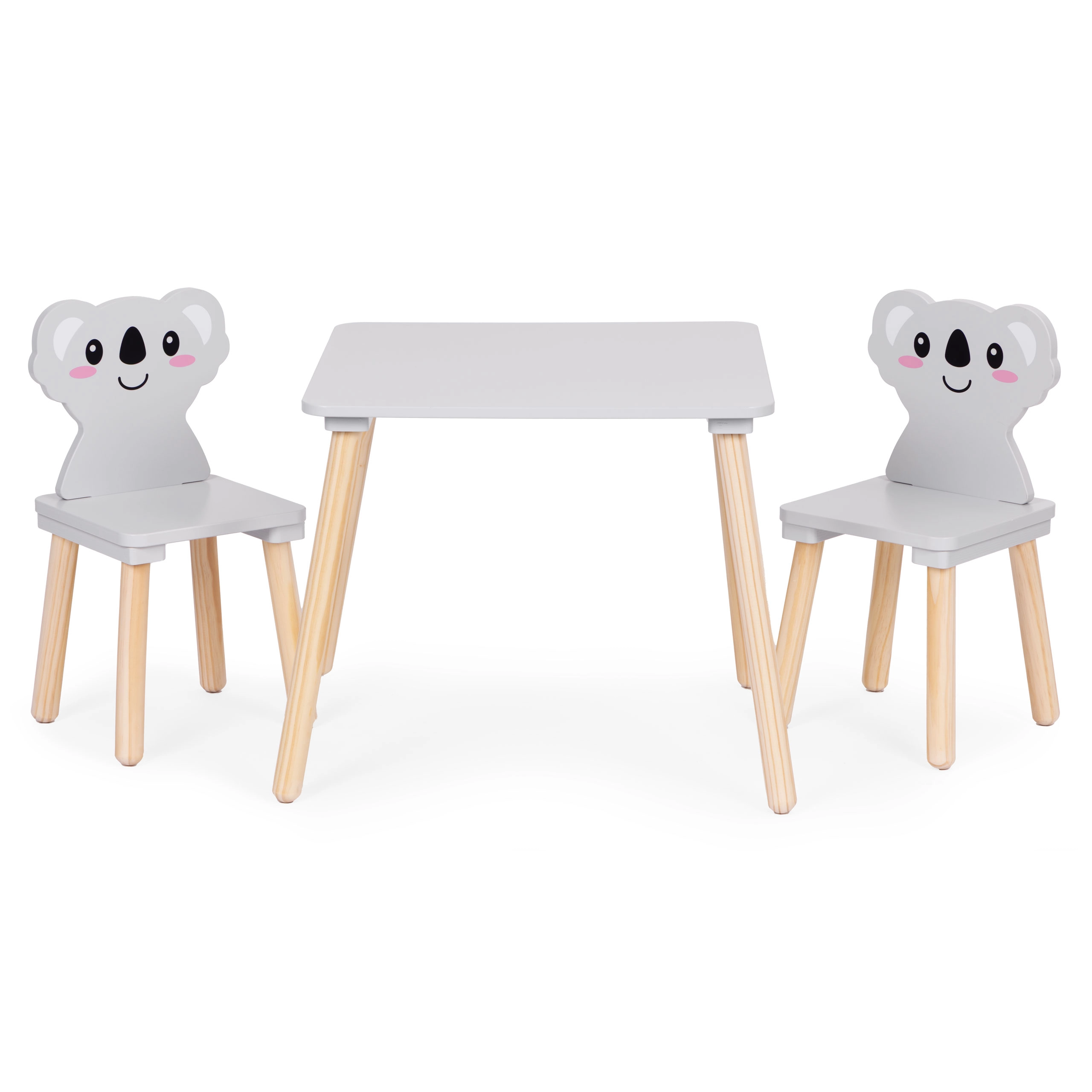 Spătarele scaunelor în formă de koala zâmbitoare adaugă camerei o notă jucăușă și îi motivează pe copii să petreacă mai mult timp la măsuță.