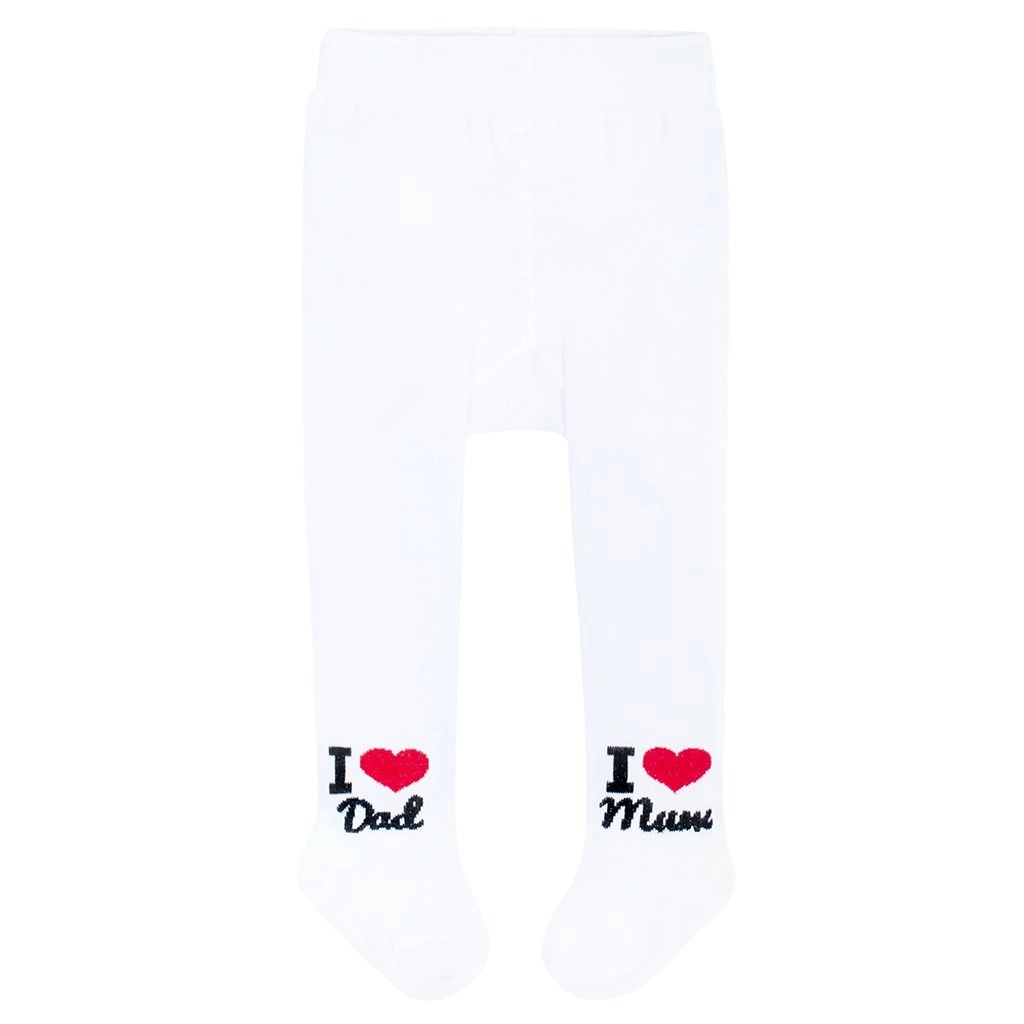 Aceste dresuri albe din bumbac New Baby atrag printr-un design jucăuș – pe partea din spate au o imagine drăguță cu inscripția I Love Mum and Dad, pe un picior I Love Mum, iar pe celălalt I Love Dad. Datorită conținutului ridicat de bumbac sunt plăcute la atingere, delicate cu pielea sensibilă a copilului și potrivite pentru purtare pe tot parcursul zilei.