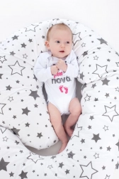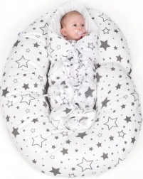 Forma generoasă îmbrățișează întregul corp, susține capul, burtica, spatele și picioarele pentru un somn liniștit și o hrănire comodă.
