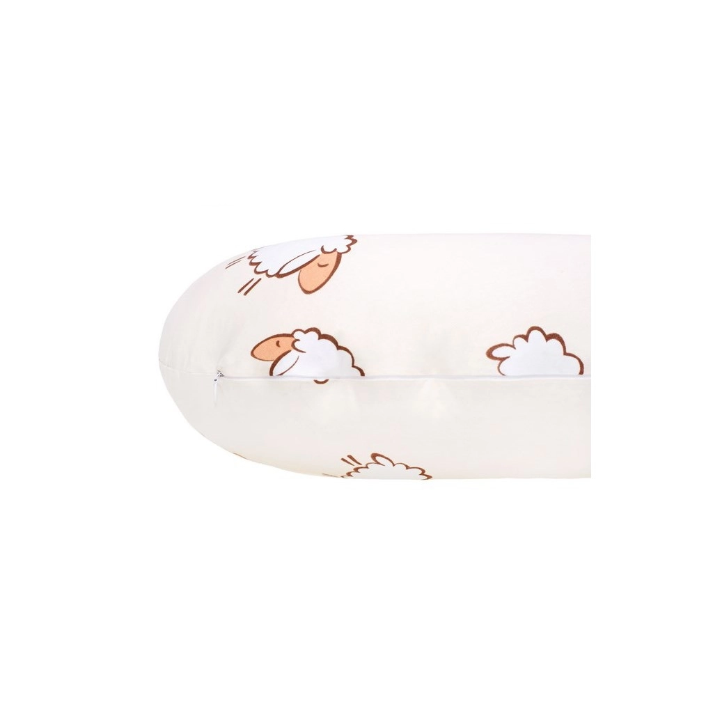 Pernă de alăptare în formă de C, un ajutor practic din timpul sarcinii până în perioada alăptării. Îmbrățișează corpul și oferă susținere pentru întregul corp pentru stat confortabil pe o parte, alinierea corectă a coloanei și o poziție comodă la hrănirea bebelușului. Husa bej cu model de oițe aduce o notă delicată și cozy în orice interior.