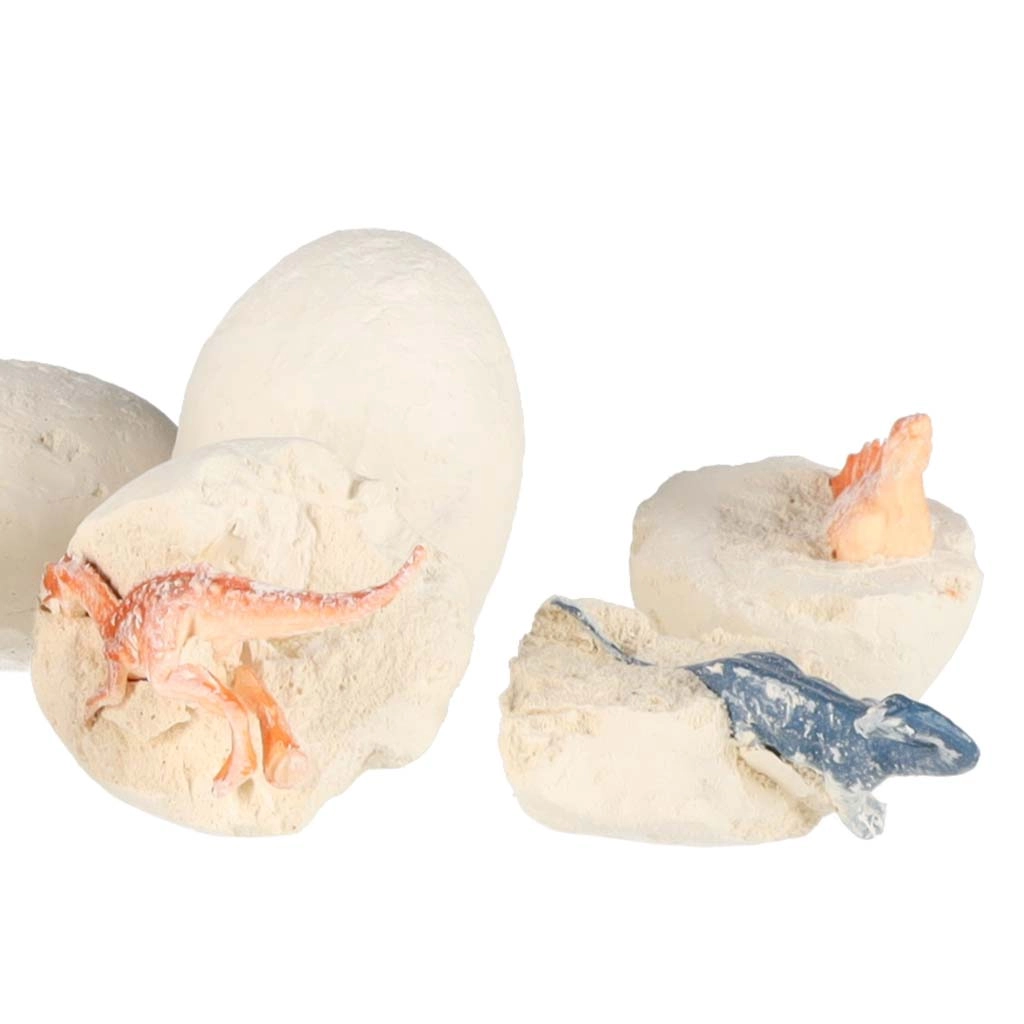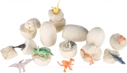 Acest set distractiv și educativ îi poartă pe copii în lumea arheologiei. Fiecare dintre cele 12 ouă din ghips ascunde o minifigurină de dinozaur, pe care copiii o vor extrage cu grijă folosind dăltița și pensula incluse. În timpul jocului își antrenează răbdarea, concentrarea și motricitatea fină și, în același timp, învață despre viața creaturilor preistorice.