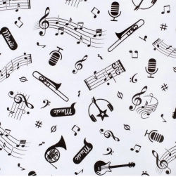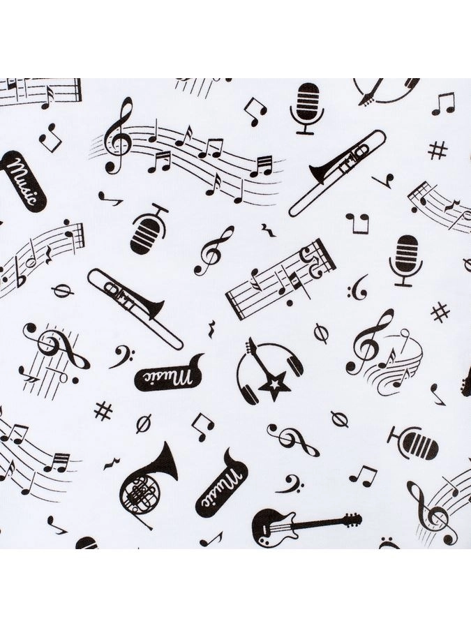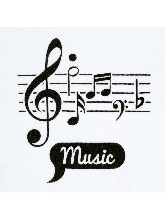- Monocrom, imprimeu cu notițe muzicale pe mâneci, inscripția Music