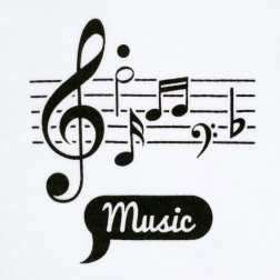 - Imprimeu stilat cu notițe muzicale și inscripția Music.