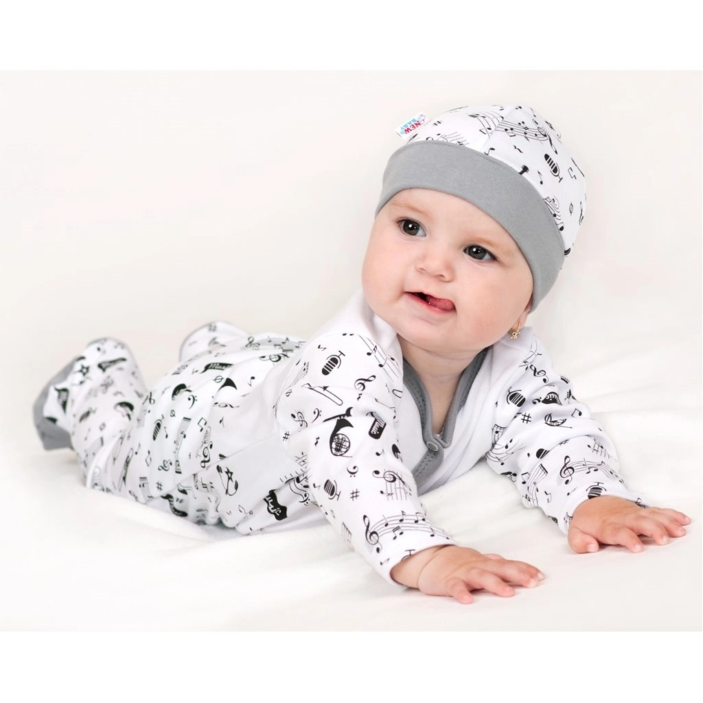 Cămașa pentru bebeluși NEW BABY Music, din bumbac 100% de înaltă calitate, este foarte moale, mângâie pielea delicată a bebelușului și ușurează îmbrăcarea zilnică. Are închidere practică cu capse, mâneci rulate și un motiv stilat cu notițe muzicale și inscripția Music.