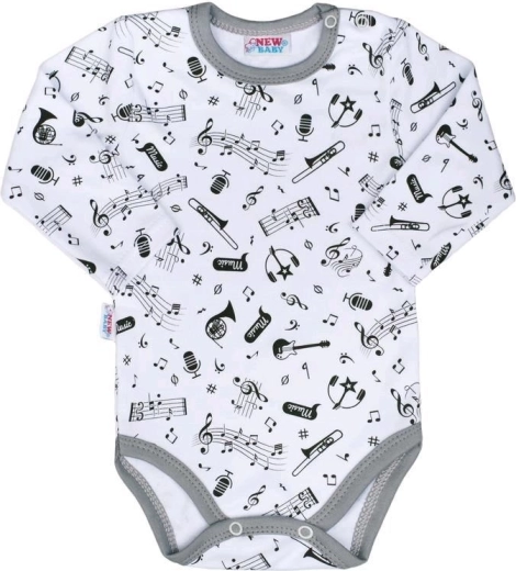 Body-ul pentru copii NEW BABY Music încântă prin materialul delicat și imprimeul jucăuș, all-over. Datorită bumbacului de calitate, este moale, respirabil și blând cu pielea sensibilă a bebelușului. Capsele practice de pe umăr și din zona inghinală facilitează îmbrăcarea și schimbarea scutecului.