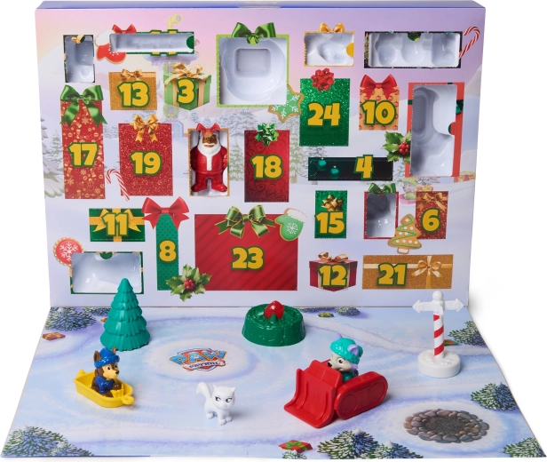 Acest calendar de advent colorat de la Spin Master aduce micilor fani PAW PATROL 24 de surprize tematice – de la figurinele cățeilor preferați în costume de iarnă până la sănii, brăduț și alte accesorii. Fiecare fereastră deschide noi posibilități de joacă și de creare a propriilor povești din Adventure Bay acoperit de zăpadă.